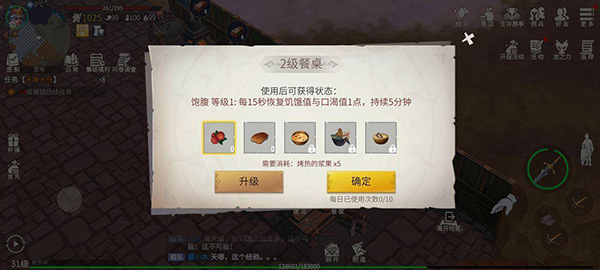 5、第三个升级餐桌台。目前前期没啥用,15秒回一点饱食度水分,几乎没啥用,但是后面可能有好东西。