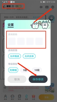 3、进入剧本房间,选择右上角【齿轮】图标,可以看到左上角剧本房间状态有【锁】图标,然后在【房间密码】选项中清除密码,选择【保存修改】选项,
