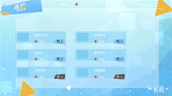 3、由于本游戏已经成功无限鲜花,我们可以打开鲜花商城直接购买超级大礼包、主线剧情、日记本等物品。