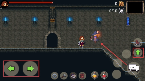 3、使用左侧移动箭头控制角色前行遇到巫师同伴时点击右侧交谈按钮获取基础操作指引。