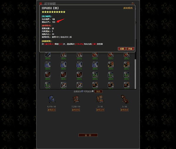 4、【战力提升与抽功法】功法和心法都会增加元气,达到一定程度可以去【人物】界面突破【境界】,境界增加主属性百分比的,很有用,心法比功法加的元气要多不少,武功和心法抽到同样的会自动升星,升星提高功法基数30%的威力和10%的元气,刚开始只能抽1阶功法,1阶任意一个升到6星会开启下一阶功法的新卡池抽2阶功法,以此类推,前期没多少碎片的情况下随缘即可,因为元气的存在所有功法都要升满星,所以没垃圾功法,抽就完了,推图挂机的功法选择方面很简单,当前武器的功法,哪个威力大,打的次数多就用哪个。