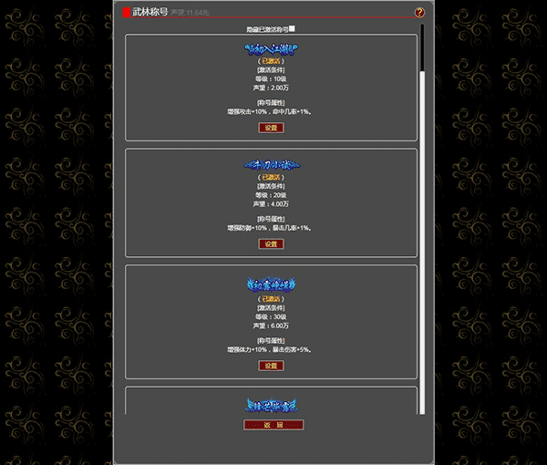 7、经脉、称号、成就不用说了,单一路线,有材料有资源就点。