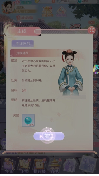 培养各路随从,委派差遣、升级技能,可塑造成美妆帮手或智囊,助力宫途。