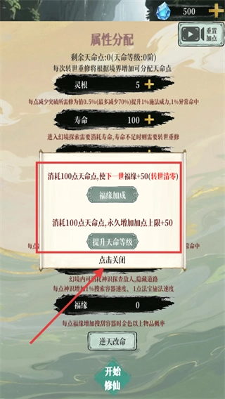 1. 拥有100点天命点时,可在两种选择中进行抉择:一是选择福缘加成,如此下一世福缘会增加50;二是提升天命等级,这样能永久增加加点上限50。具体如何选择,需依据个人的修仙规划来定。