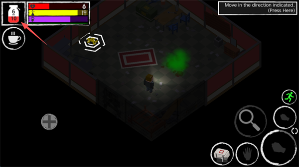 7、想到还没装备枪械,点击屏幕左上角的“血瓶”。