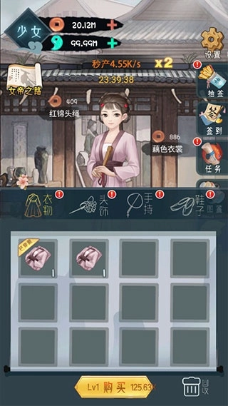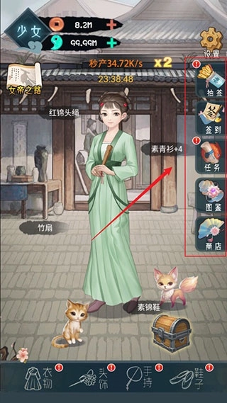 2、接着对衣物、头饰、手持物品以及鞋子进行升级,以此实现角色的升阶。